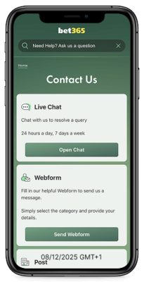 - E‑post (support@bet365)