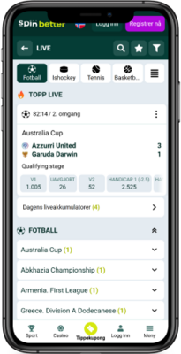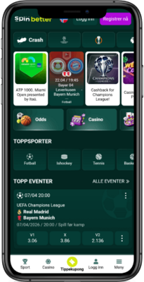 SpinBetters mobilapp finnes som en APK for Android, mens det ikke finnes en offisiell app i App Store for iOS. Mobilopplevelsen er ellers basert på en godt optimalisert nettversjon som fungerer stabilt på både mobil og nettbrett. Vi opplevde at siden laster raskt, og at det er enkelt å navigere mellom sport, live betting og kupongen. Funksjonene er stort sett de samme som på desktop, men oppsettet er litt mer kompakt. APK-versjonen gir raskere tilgang og bedre flyt enn nettleseren, men ingen unike funksjoner utover dette.