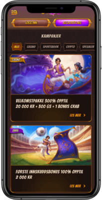 300% velkomstbonus opptil 20,000 kr + 300 GS + 1 Bonus Crab