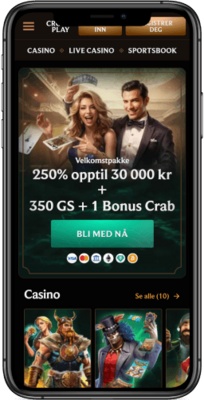 100 % velkomstpakke opptil 30 000 kr + 350 GS + 1 Bonus Crab